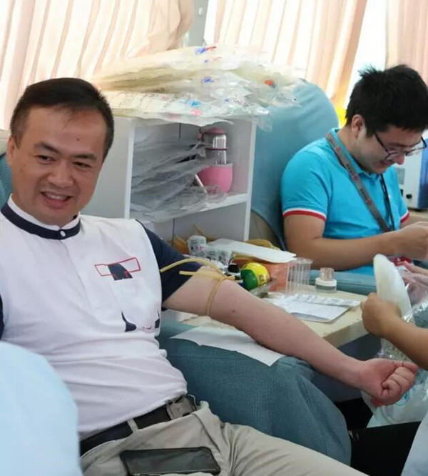上午九点不到,参加献血的志愿者早已来到现场,在现场医护人员的指导下,志愿者们秩序井然的地取表、填表、体检、验血、献血。集团公司总裁黄伟文先生率先带头献血,他动情地说,要用自己的爱心托起他人生命的希望,作为社会的一员和企业的一分子都应该带头参与进来。