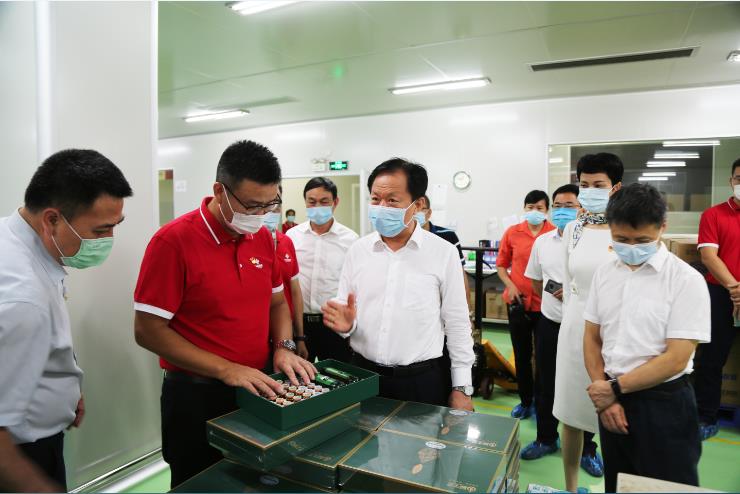 徐绍川部长一行在黄总的带领下深入和桂集团各子公司办公区、工厂、文化展厅进行调研。在工厂车间调研时,徐绍川部长指出,和桂源生堂充分挖掘广西中草药资源,发展民族本草养发,服务大众健康,打造广西品牌,已经取得了一定的品牌基础,企业要加大宣传,加强精准营销,推广方式方法上也要创新,运用新媒体,线上线下相结合,好产品要让更多人知道、用到,让广西的好产品真正走进千家万户。
