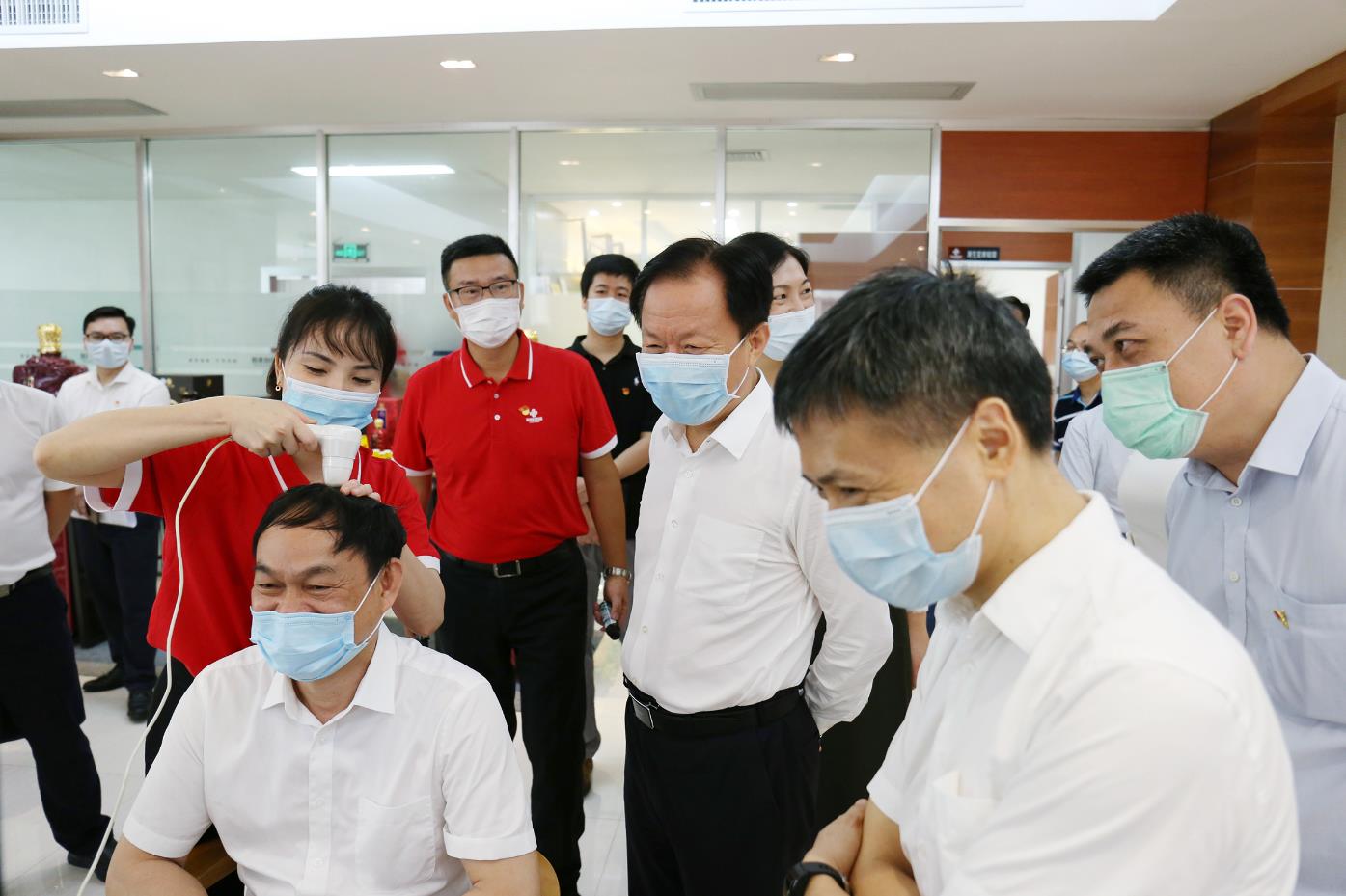 在文化展厅,徐绍川部长参观体验了源生堂自有专利头皮健康检测仪,表示和桂源生堂在科技创新方面已经迈出了坚实的一步,希望企业要加强自主知识产权的研发和保护,不断加大科研力度,以科技创新驱动企业更快更好发展。