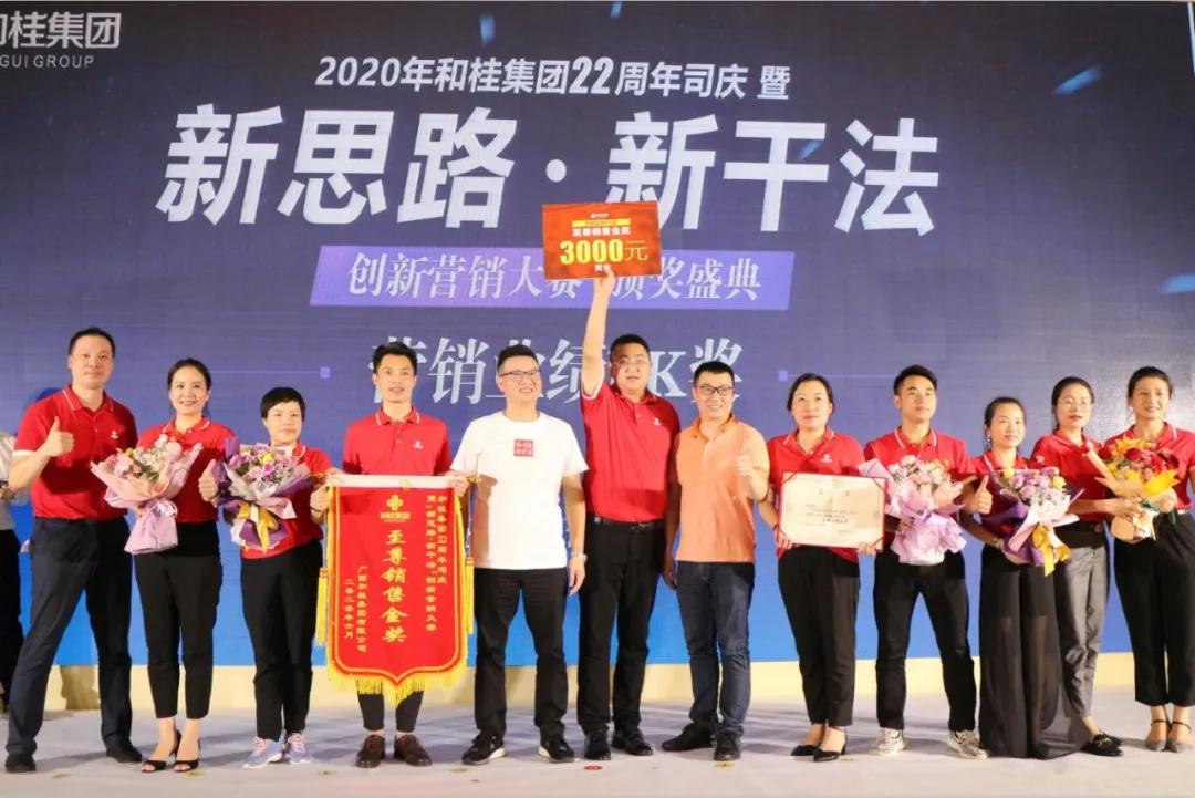 当晚,和桂集团22周年司庆暨“新思路·新干法”创新营销大赛表彰盛典,在水明漾宴会中心隆重举行,和桂集团总裁黄伟文,携各厂商合作伙伴、媒体代表、和桂各子公司同仁齐聚一堂,共贺和桂22周年生日。