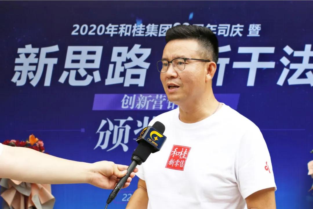 受邀参加晚宴的媒体朋友,也纷纷进行了现场采访。大家对和桂旗下各子公司的发展都颇为关注,兴趣浓厚,对22年来深度服务广西的和桂集团表示敬意。其中,黄总在接受广西广播电视台新闻频道采访时表示:和桂蓬勃发展的22年,得到了各界好友的帮助和支持,接下来,和桂将加大与社会各界的合作,持续深化与广西中医药大学的联研合作,加大在新零售领域的投入与布局,与广西电视台新闻频道形成战略合作,加入广西品牌战略计划,全力打造深受人们尊重和喜爱的民族品牌。