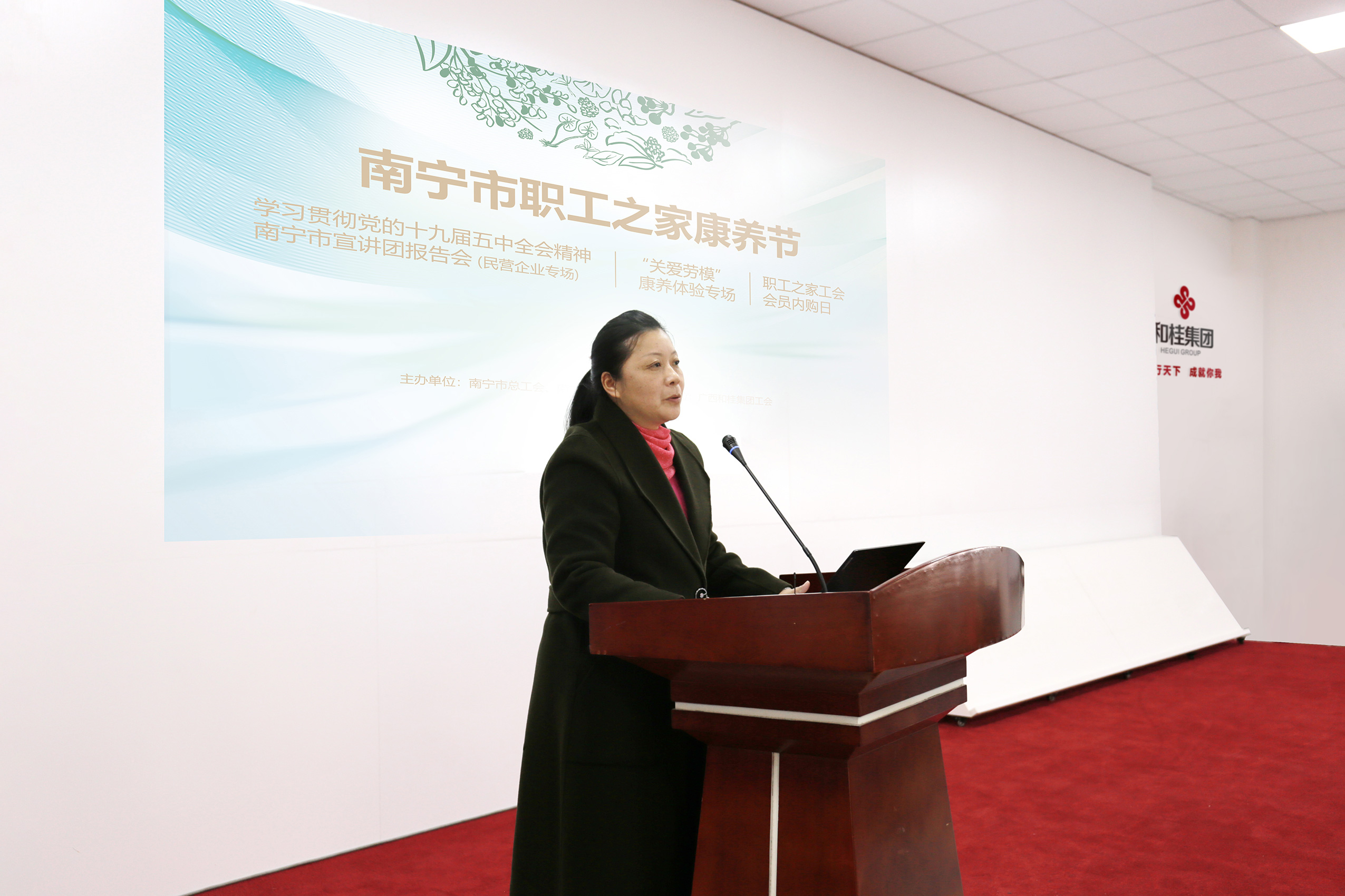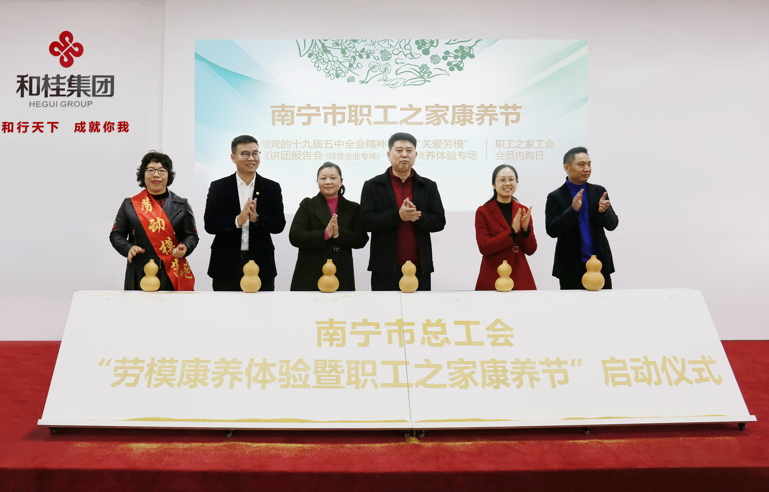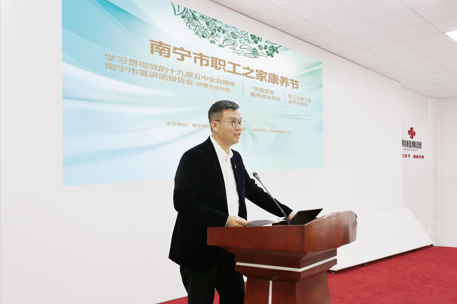 三场一会,包含“学习贯彻党的十九届五中全会精神南宁市宣讲团报告会(民营企业专场)”、“南宁市总工会‘关爱劳模’康养体验”和“职工之家工会会员内购会”三个专场活动,共同拉开“南宁市职工之家康养节”的序幕。