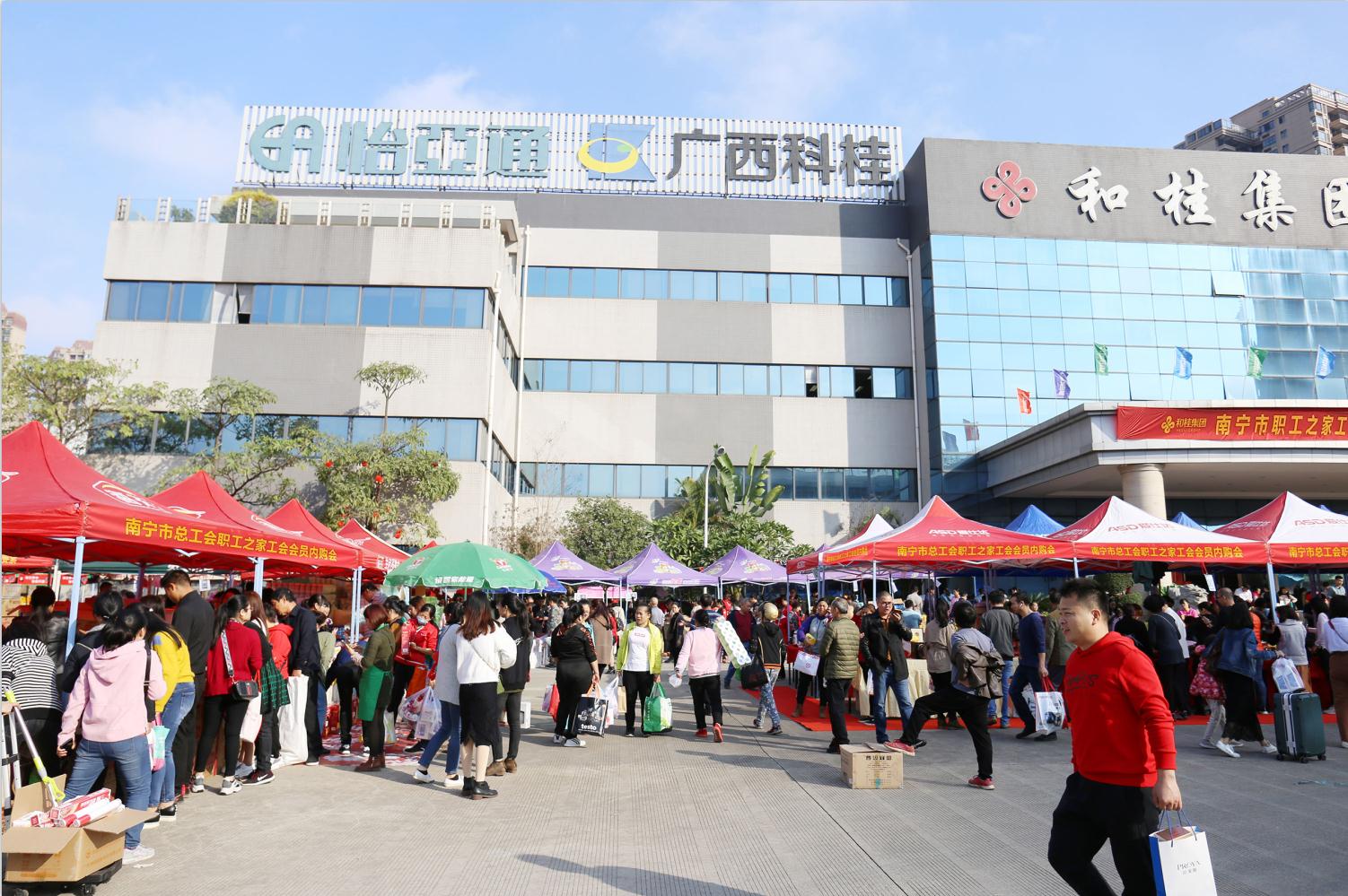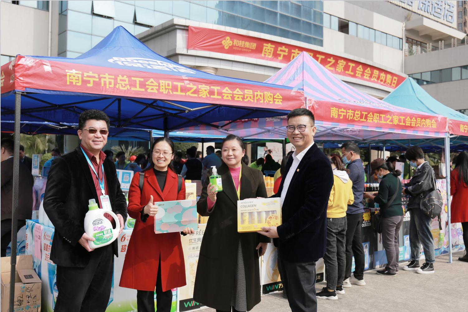 当日,南宁市职工之家工会会员内购会在和桂集团前广场同期盛大举行。