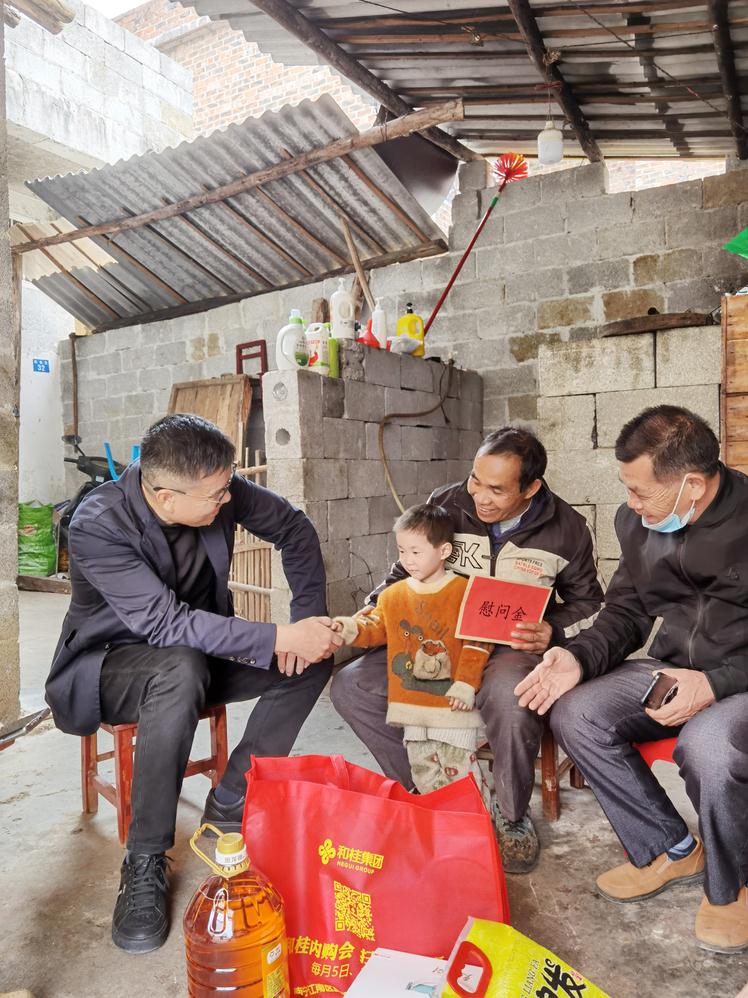 2月2日,在新春佳节到来之际,和桂集团党支部会同南宁市劳动保障监察支队,到上林县龙楼村开展春节扶贫慰问活动,为精准扶贫点的困难家庭和贫困大学生送上价值35000多元的慰问品和助学金,带去和桂家人的关怀关爱和新春祝福。