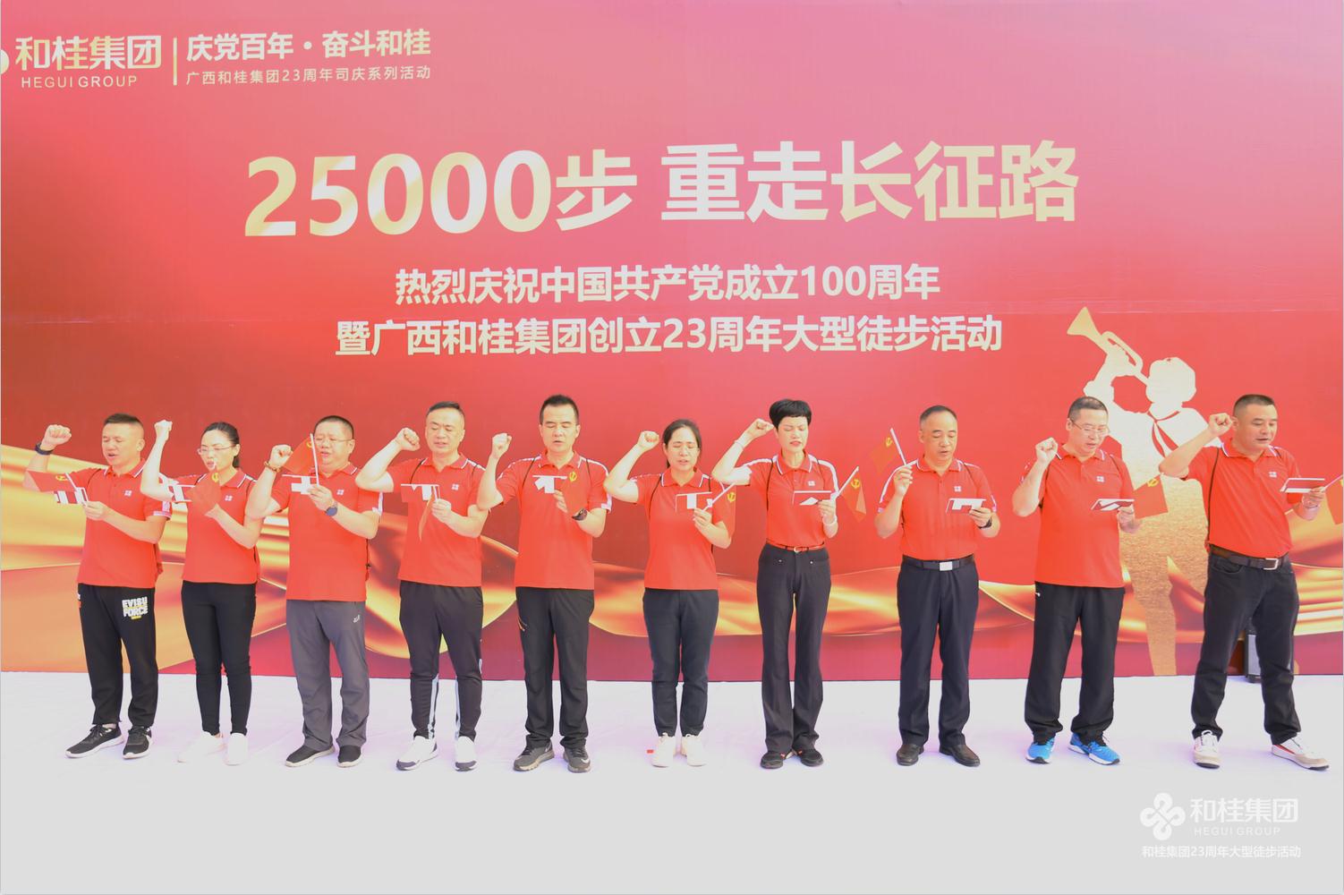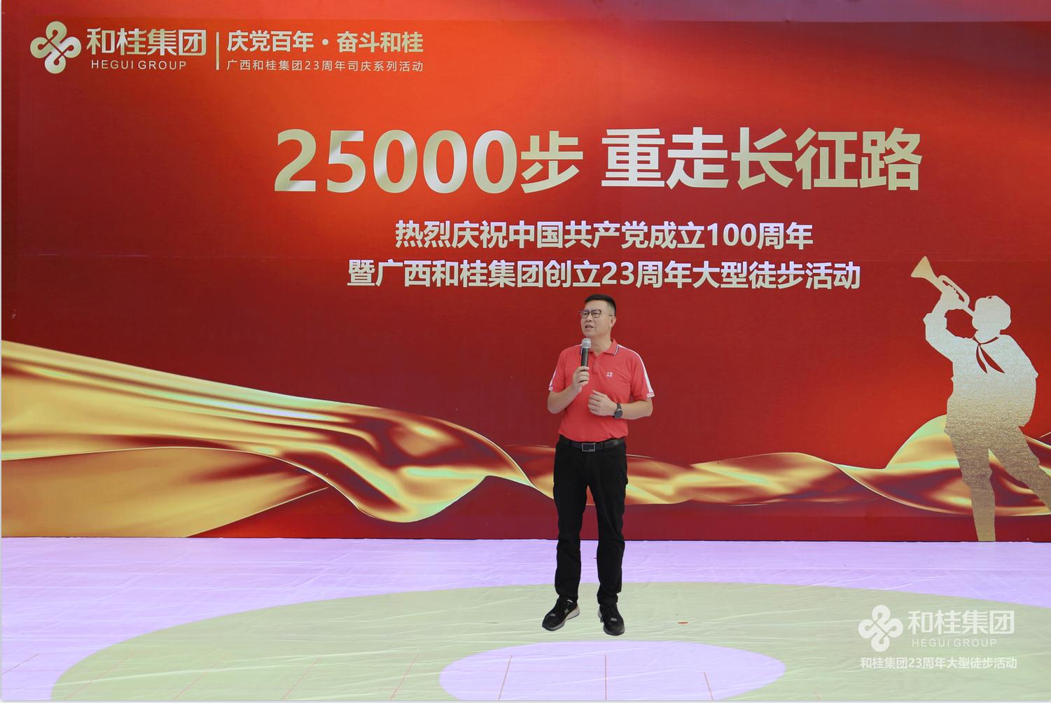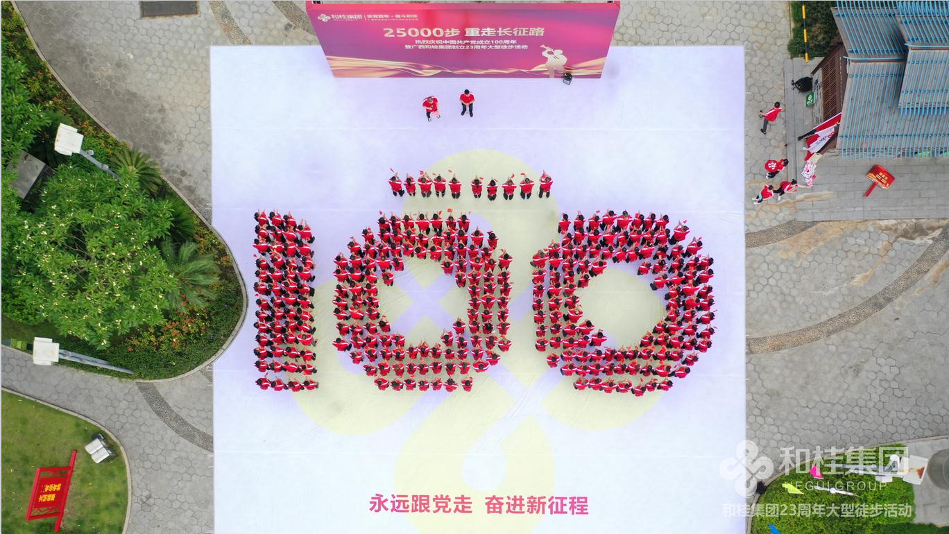 在建党100周年之际,和桂集团喜迎创立23周年司庆。6月26日,“25000步·重走长征路”2021和桂集团23周年司庆徒步活动盛大举行。和桂集团董事长黄伟文,携300名和桂家人集结邕江河畔,用一场酣畅淋漓的25000步徒步之旅,传承长征精神,凝聚奋进力量。