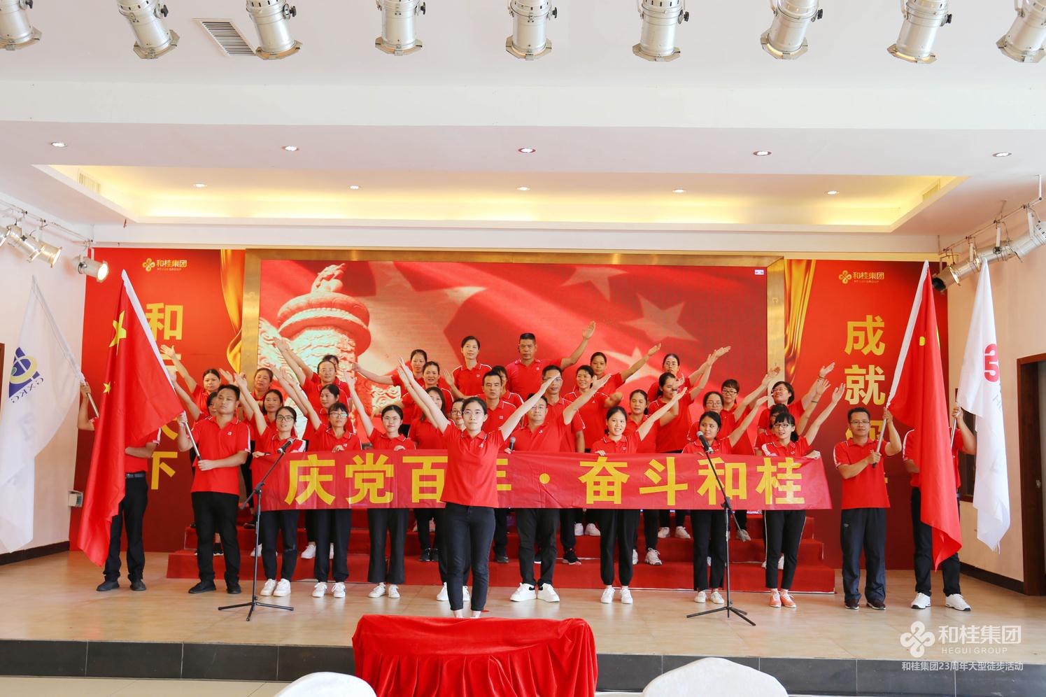 司庆活动在一首高亢有力的大合唱《团结就是力量》歌声中圆满结束,和桂集团23年奋斗历程始终如一,团结一心,众志成城,一步一个脚印创造一个个奇迹。奋进新起点,踏上新征程,和桂集团将继续秉承“诚信、创新、感恩、共赢”的企业价值观,坚持党旗领航,实干兴企,以庆党百年为起点,齐心奋斗,打造百年和桂砥砺前行!
