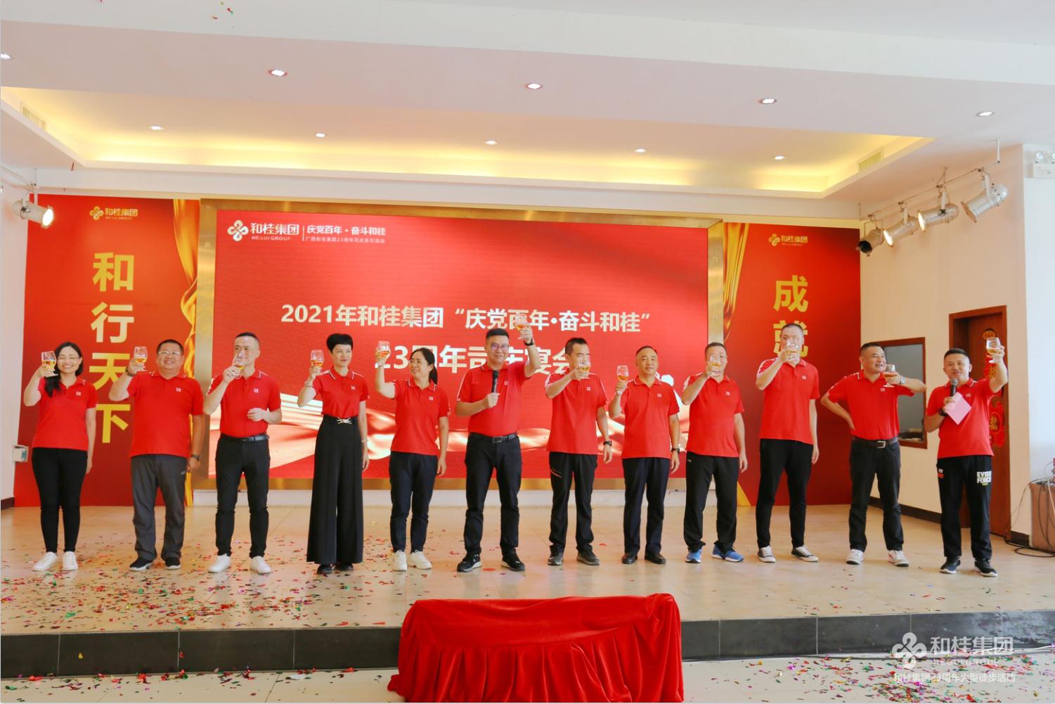 在一片热情的欢呼声中,黄总登台致祝酒辞,携集团常委向现场嘉宾与全体家人深情祝酒,感谢大家23年来,对和桂集团的大力支持与辛勤付出,在未来的发展中,希望大家一如既往的支持,齐心协力,创新实干,为建设百年和桂努力奋斗!