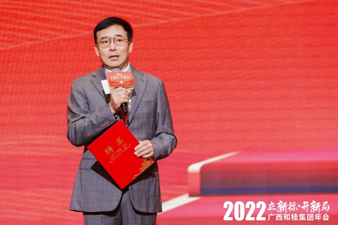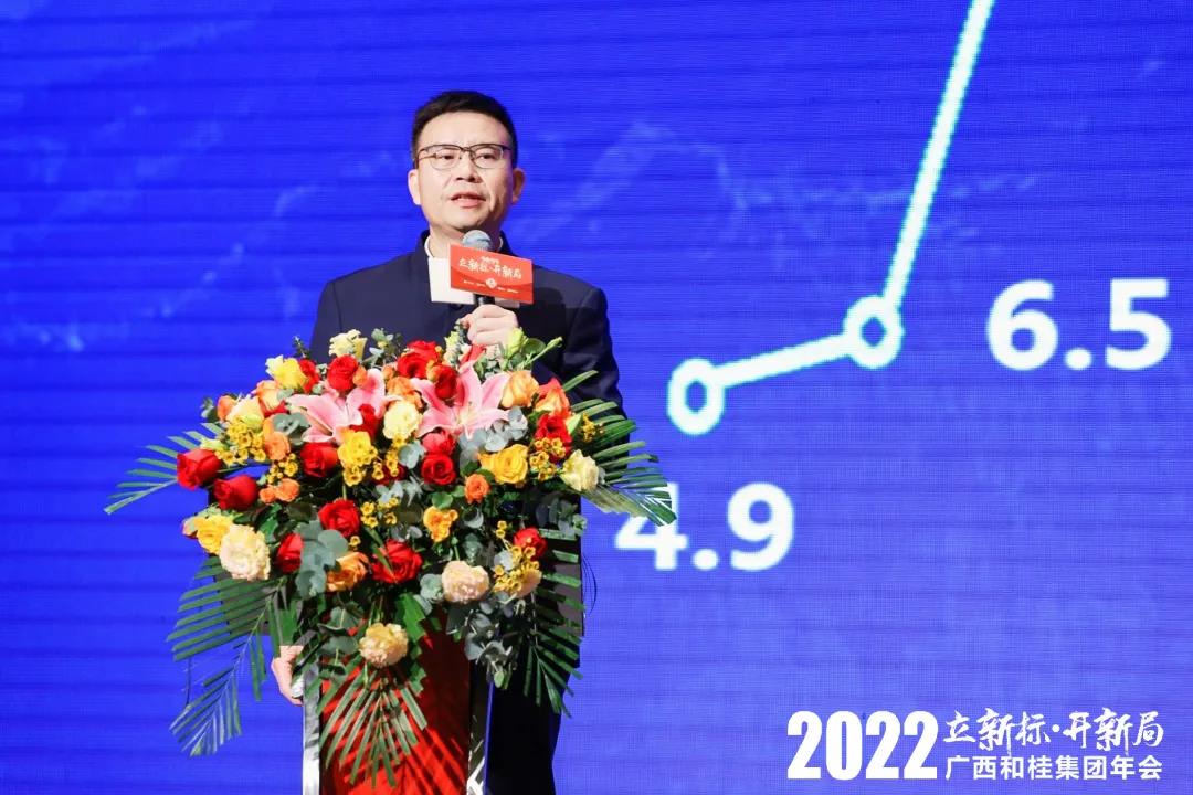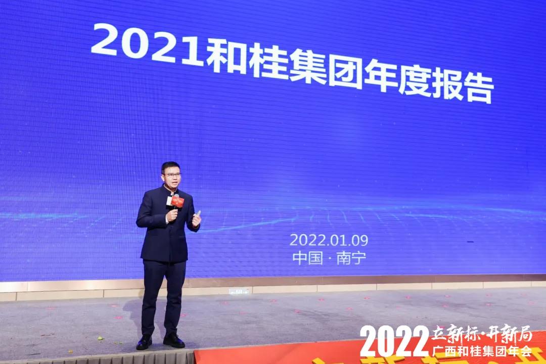 和桂集团董事长黄伟文作《打胜仗·向未来》的主题报告,回顾总结2021年的亮点工作与成功经验,下达集团2022年的总体运营目标,并对各分子公司2022年工作进行全面部署。