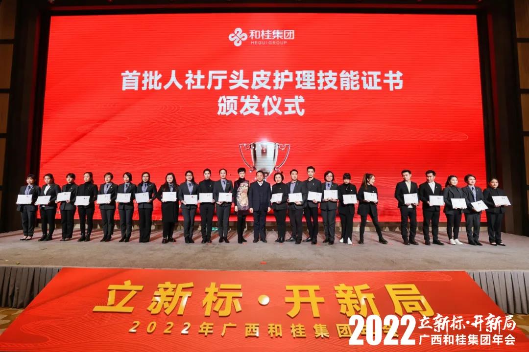 经过不懈努力,和桂源生堂积极推进的头皮管理师职称正式落地,成为职业新工种。和桂源生堂头皮管理师经过严格考核,获得行业首批职称鉴定,国家认可。凭着行业领先的专业优势,和桂源生堂成为行业首家头皮护理专项技能考核鉴定机构。会上,举行了首批人社厅头皮护理技能证书颁发仪式,发出中国第一本头皮护理技能证书,荣耀之至。