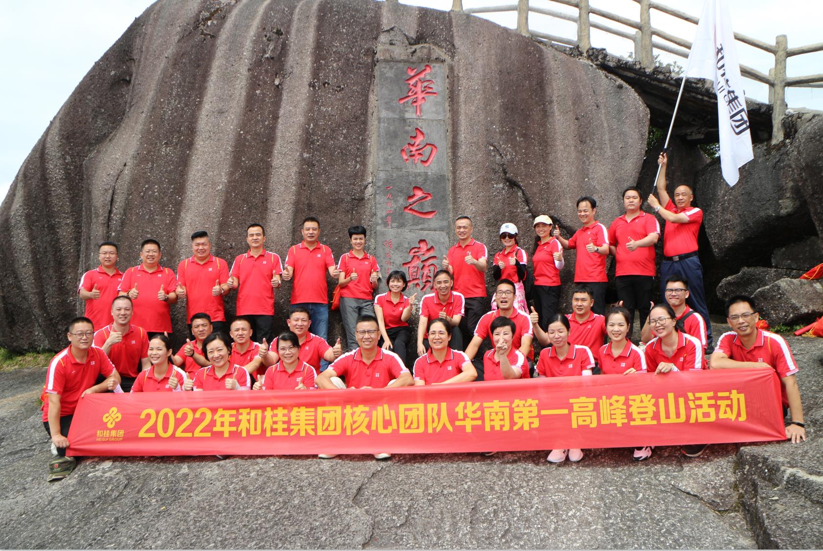 在黄总的率领下,和桂核心团队集结在华南第一高峰——猫儿山,向华南之巅挺进,以昂扬斗志,庆祝集团成立24周年。