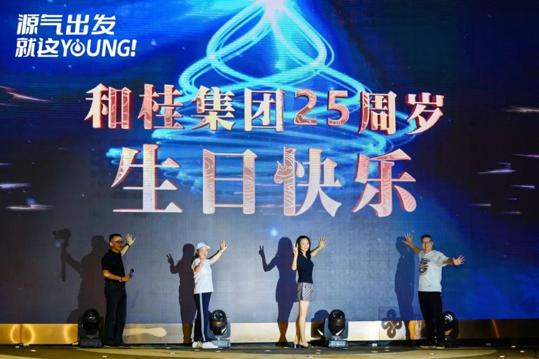 7月22日晚20:00,“源气出发·就这YOUNG!”和桂集团25周年庆暨2023夏日友情天·城市音乐会在康乐青山·江畔小镇举行。和桂集团董事长、源生堂品牌创始人黄伟文,携集团精英与各界合作伙伴、特邀嘉宾,以及和桂生产、源生堂养发、科桂贸易、和你供应链四家子公司的VIP客户共800人相聚星空下,以音乐之名,重温旧日时光,分享生日喜悦。