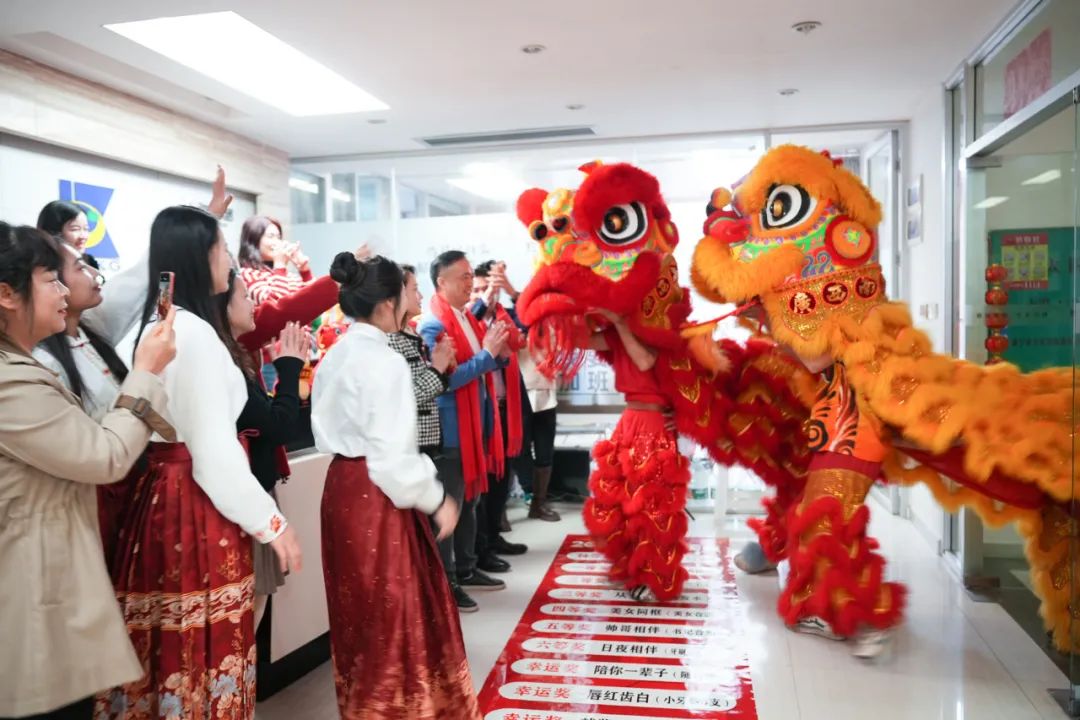 随后,在欢快的锣鼓声伴随下,醒狮逐一前往各子公司、职能部门、生产车间进行祈福,将源源不断的财气、运气、福气,传递到集团的每一个角落。
