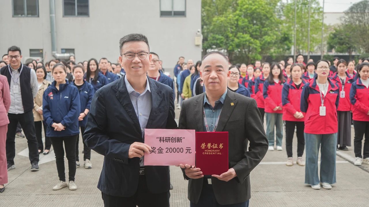 4月7日,和桂集团在周一集团晨会上举行了科技创新表彰仪式,在全体员工的共同见证下,集团董事长黄伟文为集团副总裁杨天云颁发创新荣誉证书及奖金,表彰其团队在科研中作出的突出贡献。
