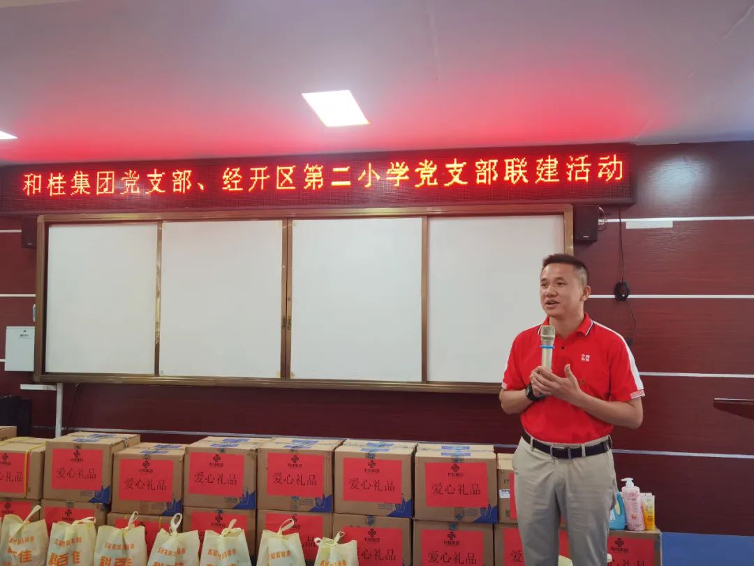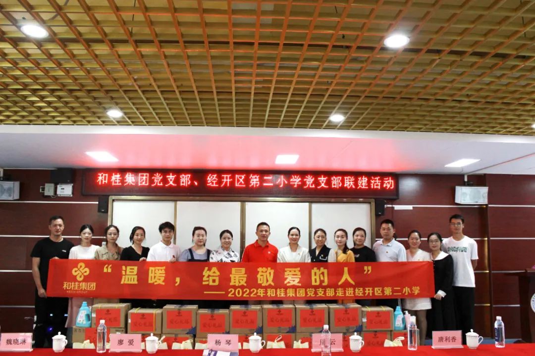 经开区环卫站慰问活动结束后,和桂集团党支部一行又来到经开区第二小学开展慰问。经开区第二小学党支部书记、校长杨琴携校方领导热情接待。校方对和桂集团开展的慰问工作表示感谢和高度赞扬,并代表学校领导班子向大家承诺:学校会尽心尽力办好教育,为学生服务,为社会服务。