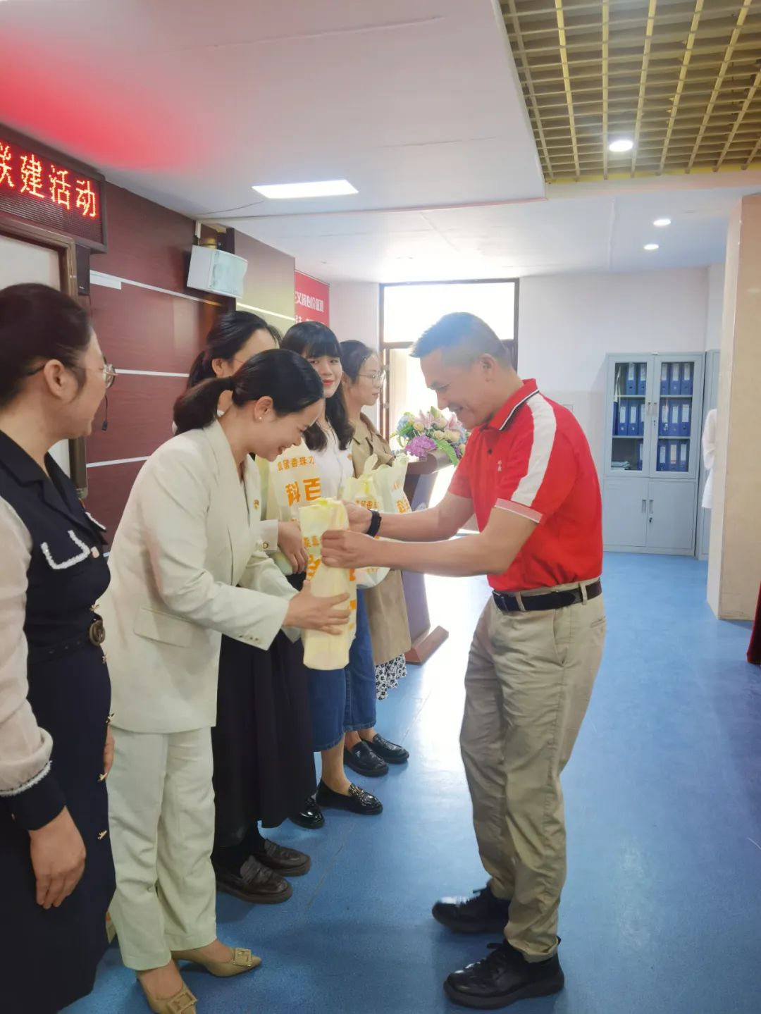(和桂集团党支部书记周云为教师们送上礼品)