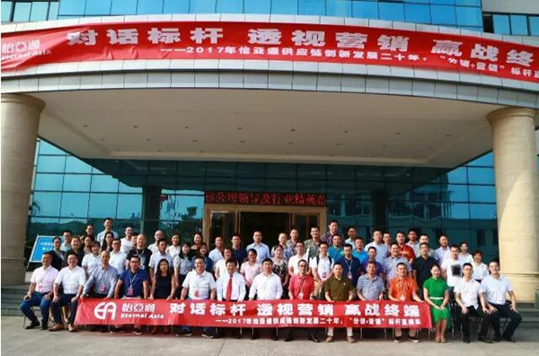 2017年9月21日-9月22日,为期2天的“对话标杆 透视营销 赢战终端-2017年怡亚通供应链创新发展二十年,‘分销+营销’标杆直通车”全国首站跨区域标杆游学在公司顺利开展。来自怡亚通全国10个省区的日化合资公司总经理及销售负责人、上游厂商等共计61人参加。本次交流活动由怡亚通供应链大学主办、广西科桂贸易有限责任公司承办,并得到怡亚通品牌服务平台、380分销平台运营中心与广西省区的大力支持。