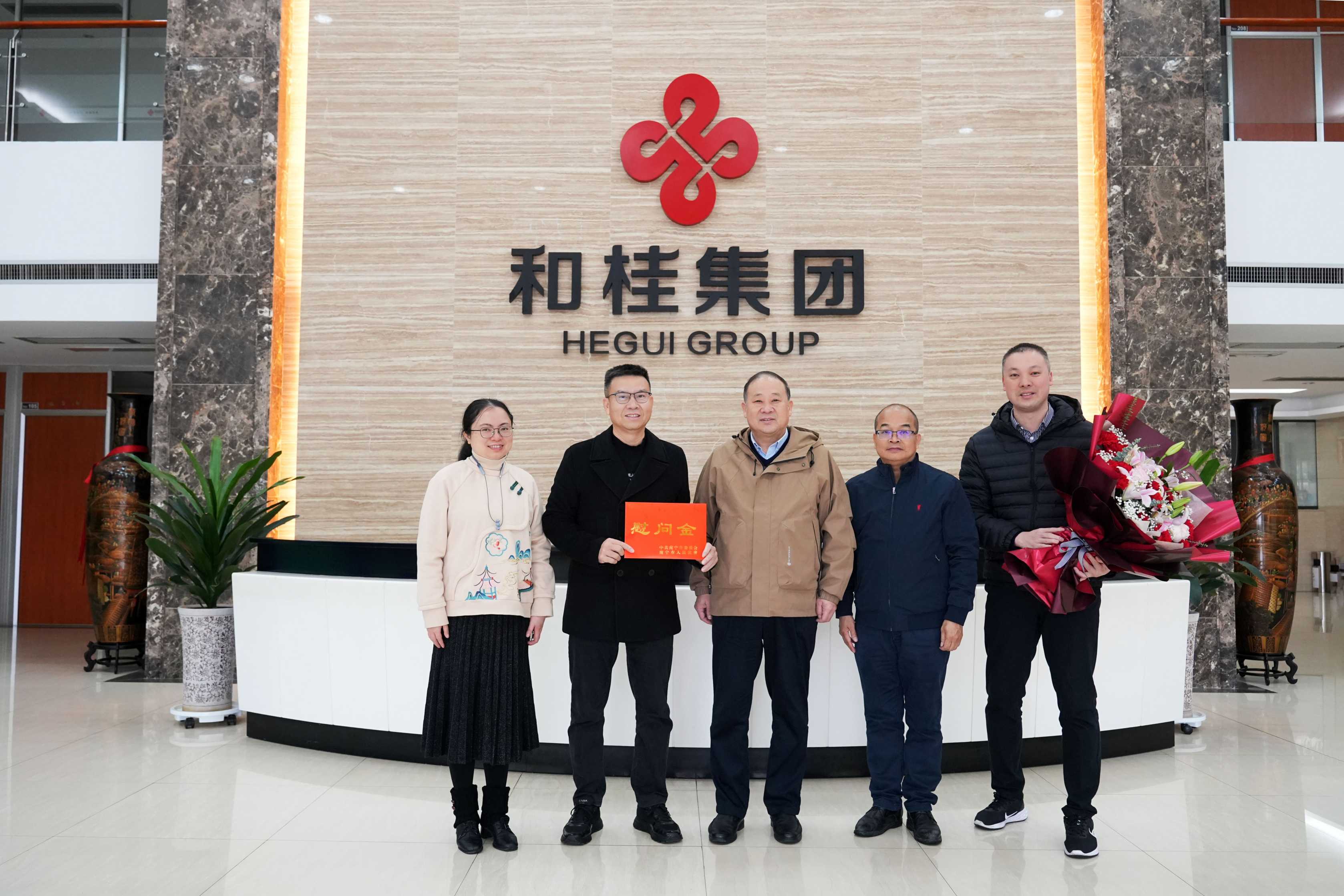 南宁市委统战部副部长、市工商联党组书记张献辉(中)广西和桂集团董事长黄伟文(左二)
