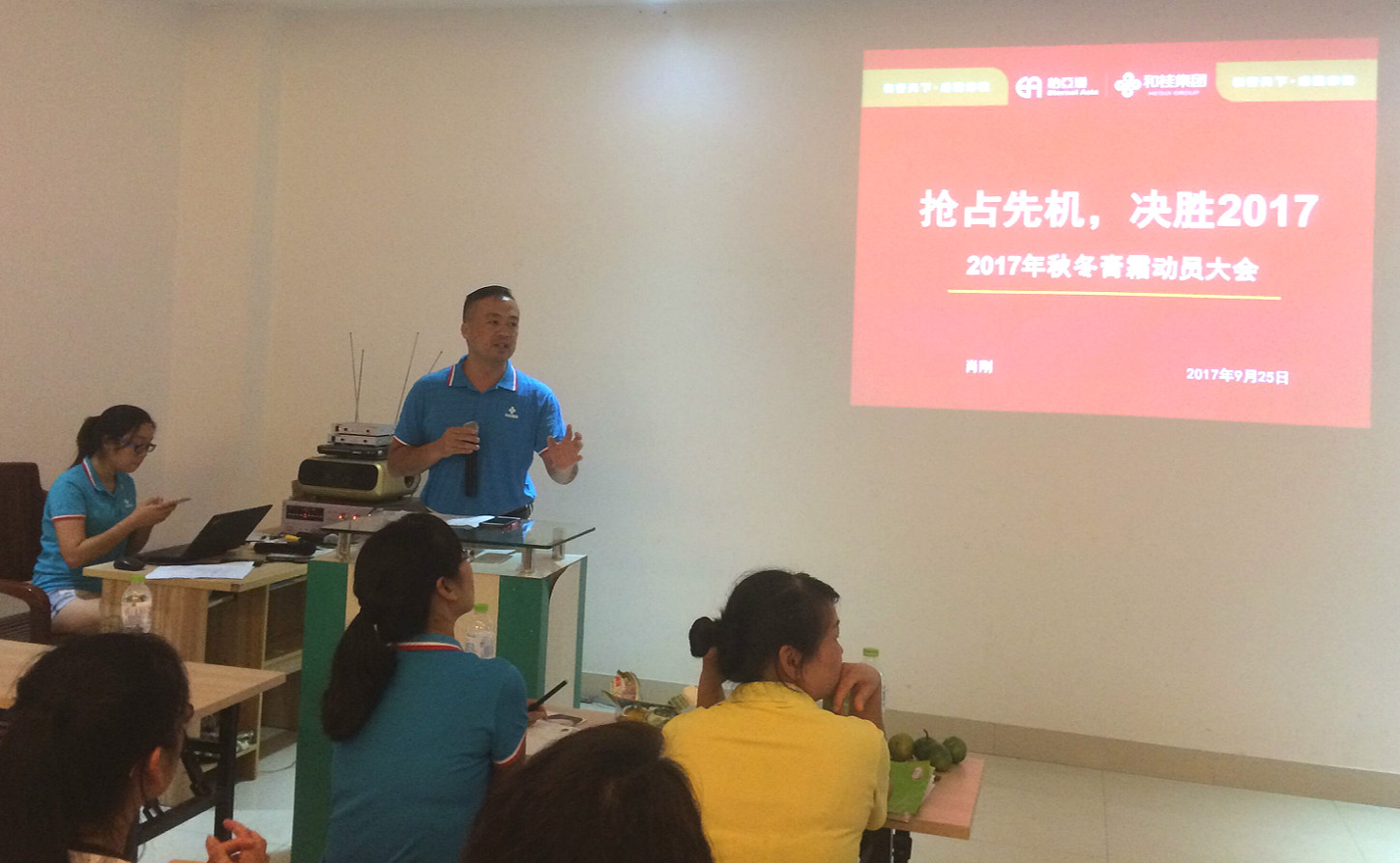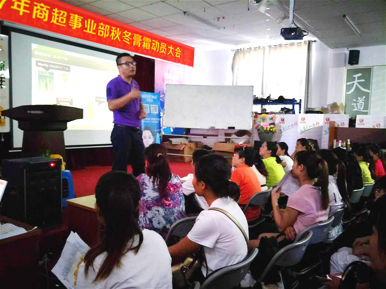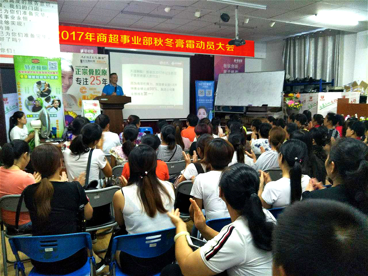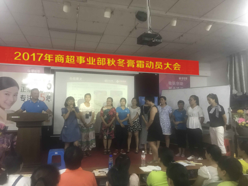 为确保打赢2017年这场膏霜战役,9月25日-9月26日商超事业部总经理肖刚带领市场部各品牌在全区召开《2017年商超事业部秋冬膏霜动员及巡场大会》,分别开展了玉林市场、贵港梧州市场、桂林市场、柳州来宾河池市场四场会议,此次的动员大会为我们的膏霜战役的胜利打下基础。